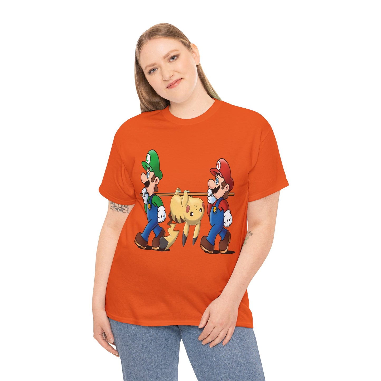 The unisex heavy cotton tee is the basic staple of any wardrobe. It is the foundation upon which casual fashion grows. All it needs is a personalized design to elevate things to profitability. The specialty spun fibers provide a smooth surface for premium printing vividity and sharpness. No side seams mean there are no itchy interruptions under the arms. The shoulders have tape for improved durability. .: 100% Cotton (fiber content may vary for different colors) .: Medium fabric (5.3 oz/yd² (180 g/m²)) .: Classic fit Runs true to size imperial system (pounds, inches, etc.) S-Width in 17.99 Lenght in 28.50 Sleeve length in 7.24 M-Width in 20.00 Lenght in 29.49 Sleeve length in 7.76 L-Width in 21.97 Lenght in 30.51 Sleeve length in 8.23 XL-Width in 23.98 Lenght in 31.50 Sleeve length in 8.74 2XL-Width in 25.98 Lenght in 32.52 Sleeve length in 9.25 3XL-Width in 27.99 Lenght in 33.50 Sleeve length in 9.76 4XL-Width in 30.04 Lenght in 34.49 Sleeve length in 10.24 5XL-Width in 31.97 Lenght in 35.51 Sleeve length in 10.75 All products are unique and produced only once ordered. This also means that returns and exchanges are not supported if you-customer ordered the wrong size, color, or simply doesn’t like the product.
